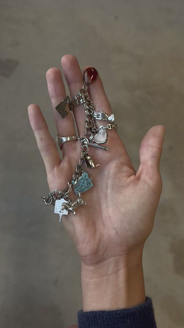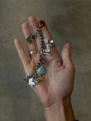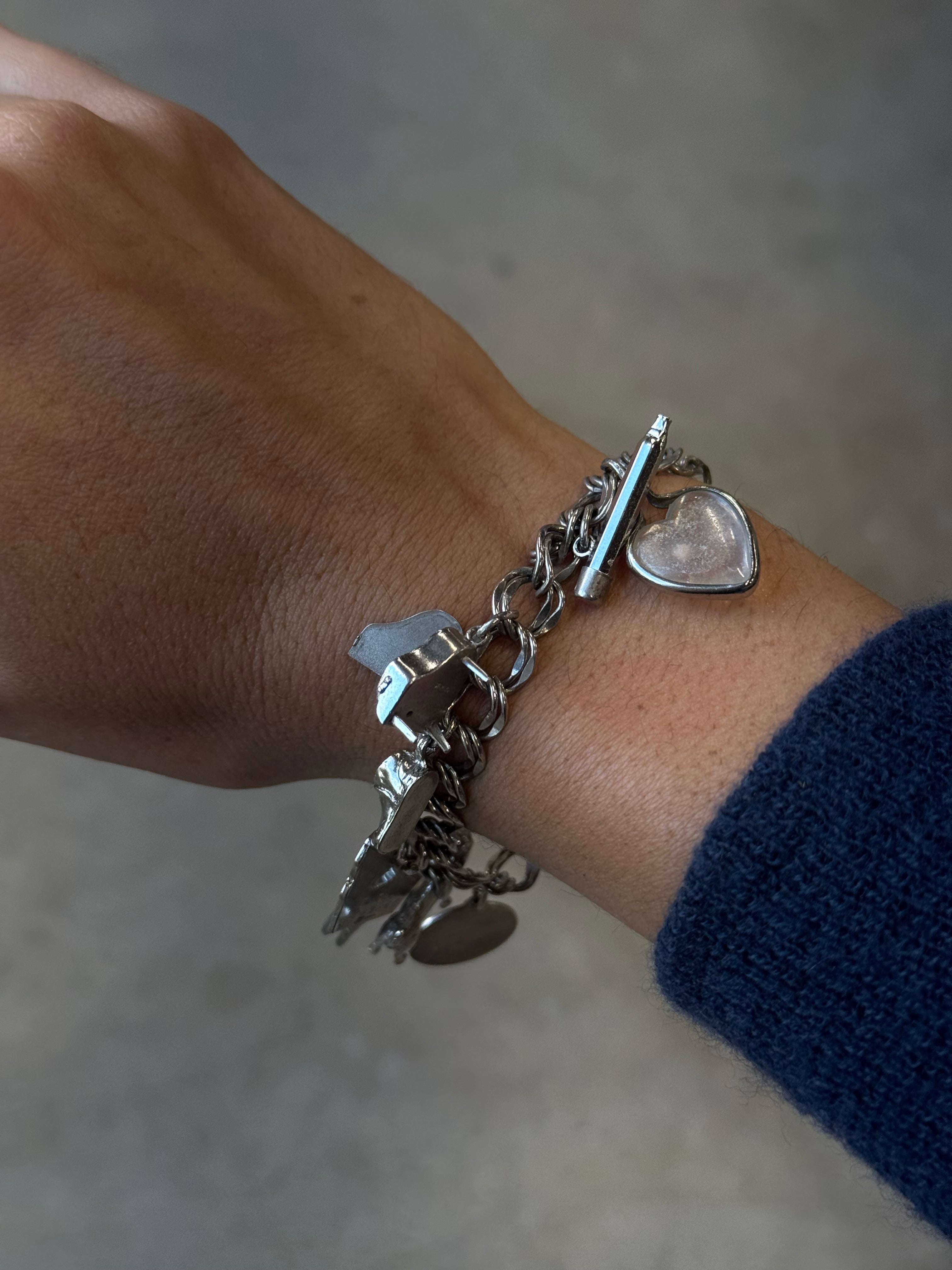 Full Sterling Silver Charm Bracelet / 8in long