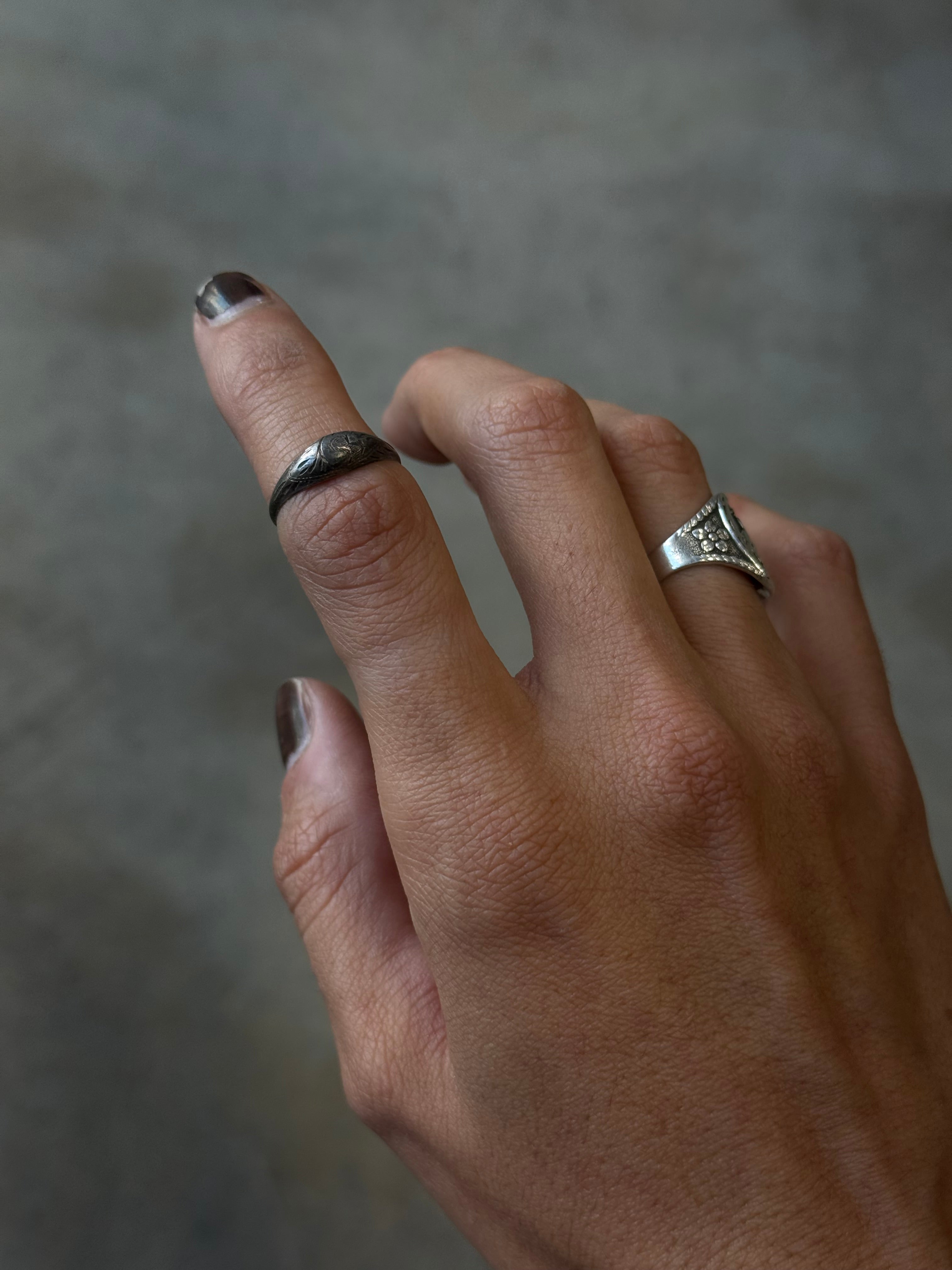Antique Floral Etched Sterling Silver Ring